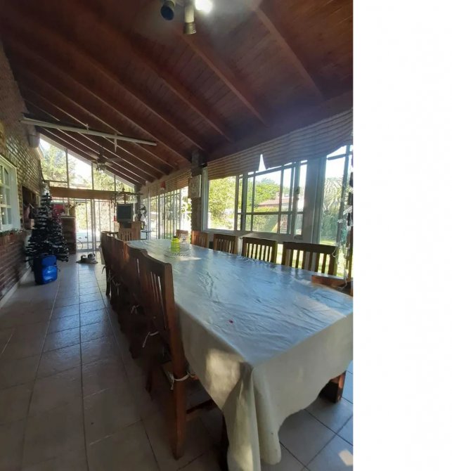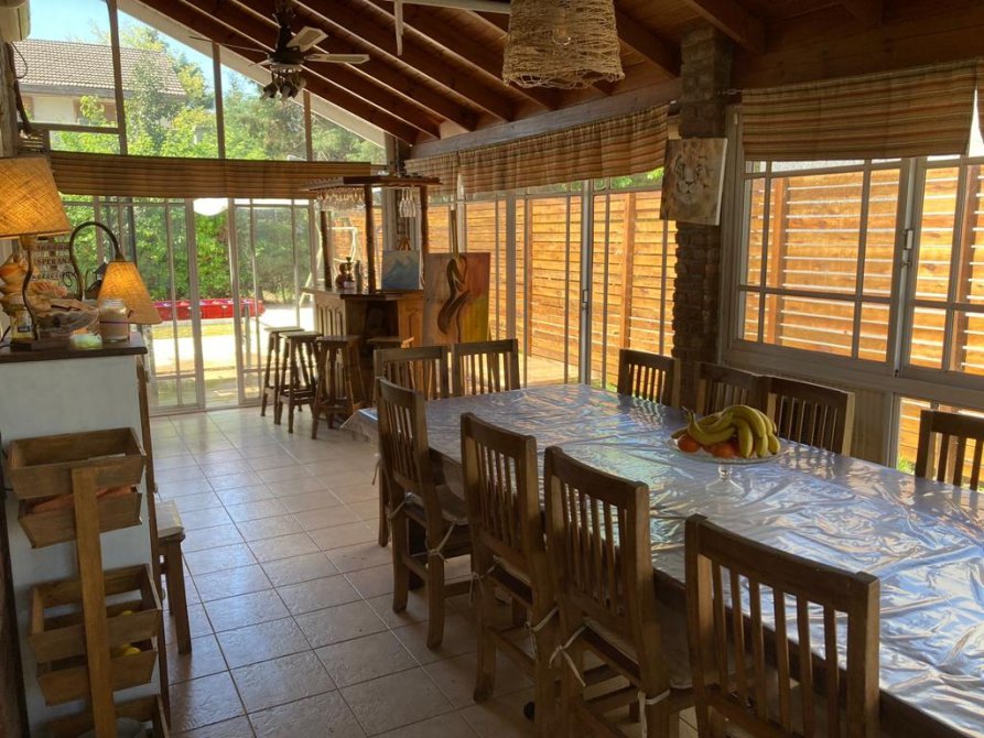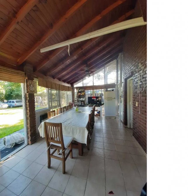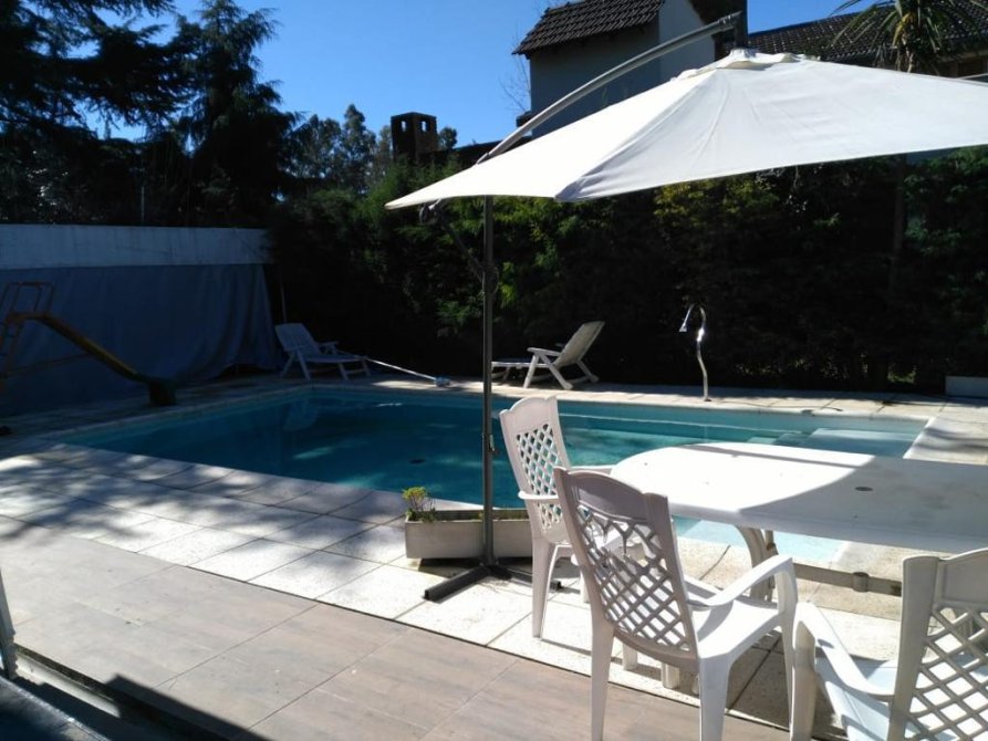 Cuenta con cocina, comedor, living con hogar, tres dormitorios, baño completo, toilette. tiene galería con parrilla, cochera y piscina