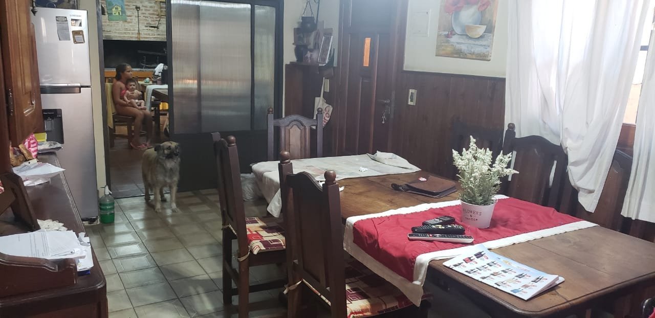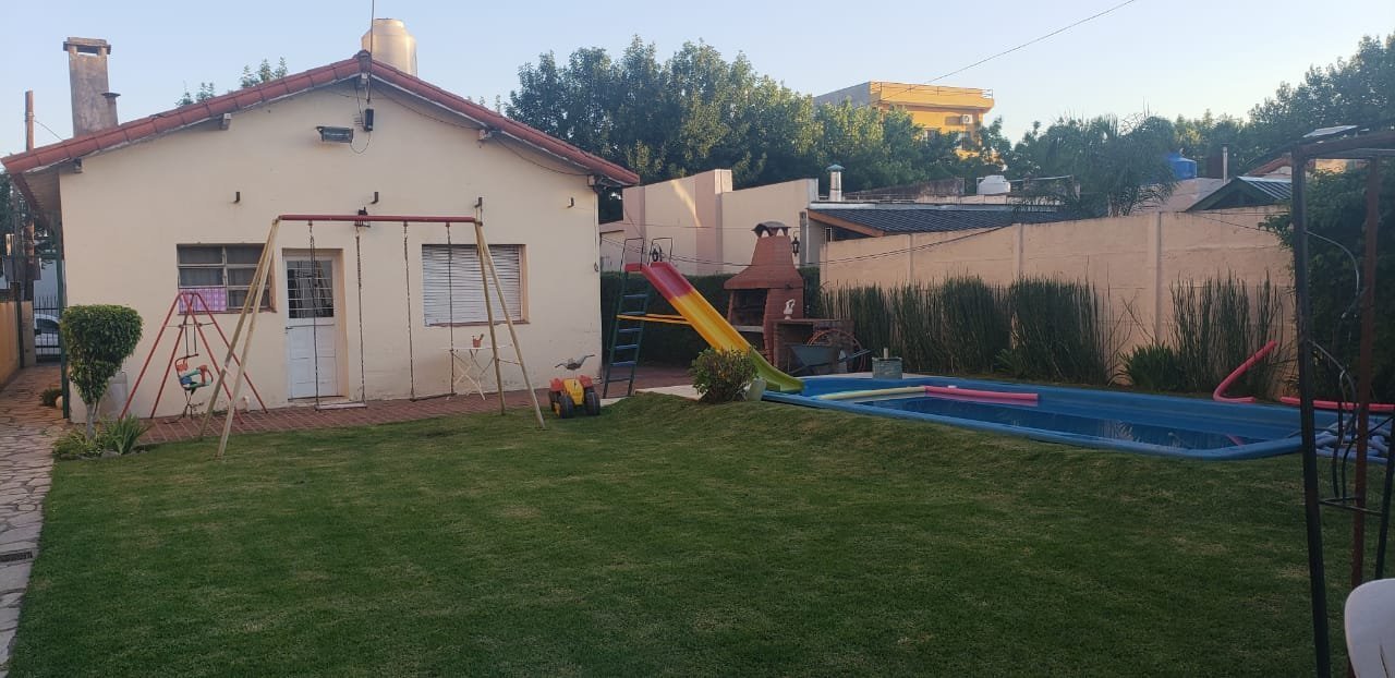 Cocina, living comedor, 2 dormitorios en planta baja y uno dormitorios mas en planta alta todos con placard, dos baños patio y pileta.